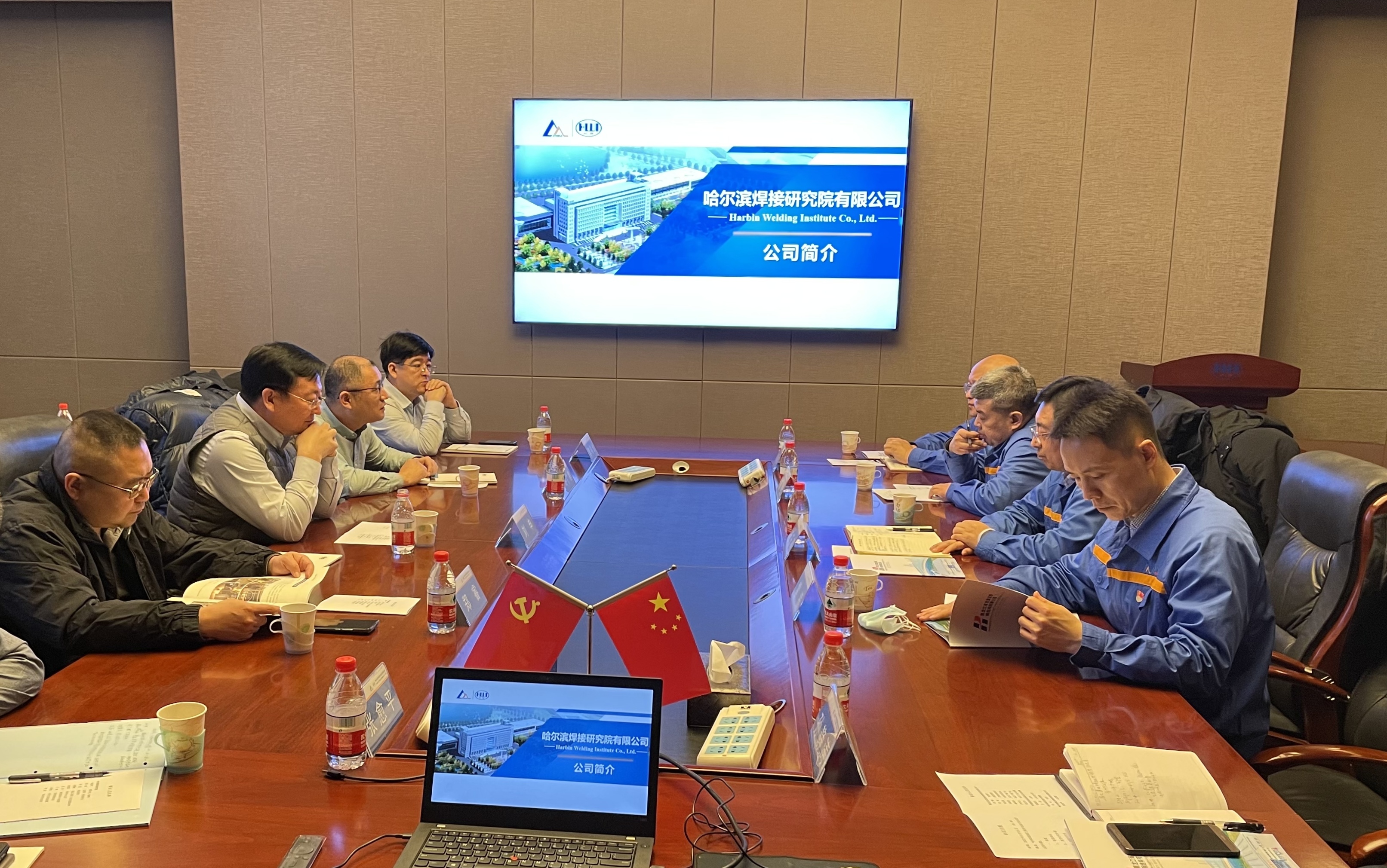 會上,楊玉亭董事長介紹了哈焊院總體情況以及國家工程中心建設、科研開發等方面的工作情況,副總經理徐鍇對哈焊院的發展歷程、人才隊伍以及科研實力進行了詳細介紹。