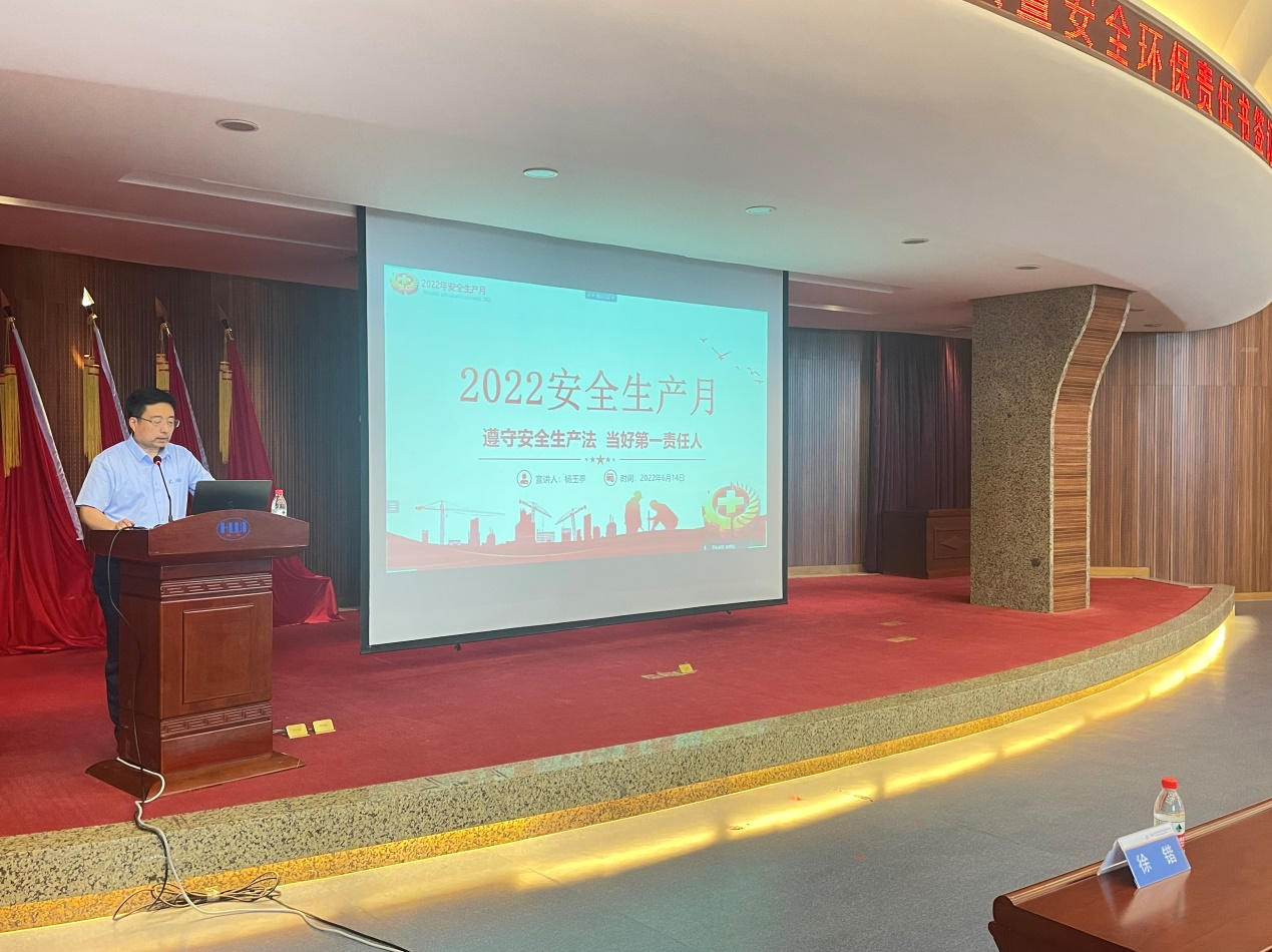 黨委書記、董事長(zhǎng)楊玉亭作了《遵守安全生產(chǎn)法 當(dāng)好第一責(zé)任人》的主題報(bào)告,著重從三個(gè)方面就安全工作展開(kāi)講授,既有中央精神傳達(dá),又有安全生產(chǎn)相關(guān)理論知識(shí)解讀,并對(duì)安全生產(chǎn)月工作提出了具體要求:一要認(rèn)清形勢(shì),統(tǒng)一思想,充分認(rèn)識(shí)開(kāi)展“安全生產(chǎn)月”活動(dòng)的重要性;二要提高站位,落實(shí)責(zé)任,切實(shí)加強(qiáng)各級(jí)人員的安全意識(shí);三要強(qiáng)化宣傳,普及知識(shí),讓安全常識(shí)入腦入心。