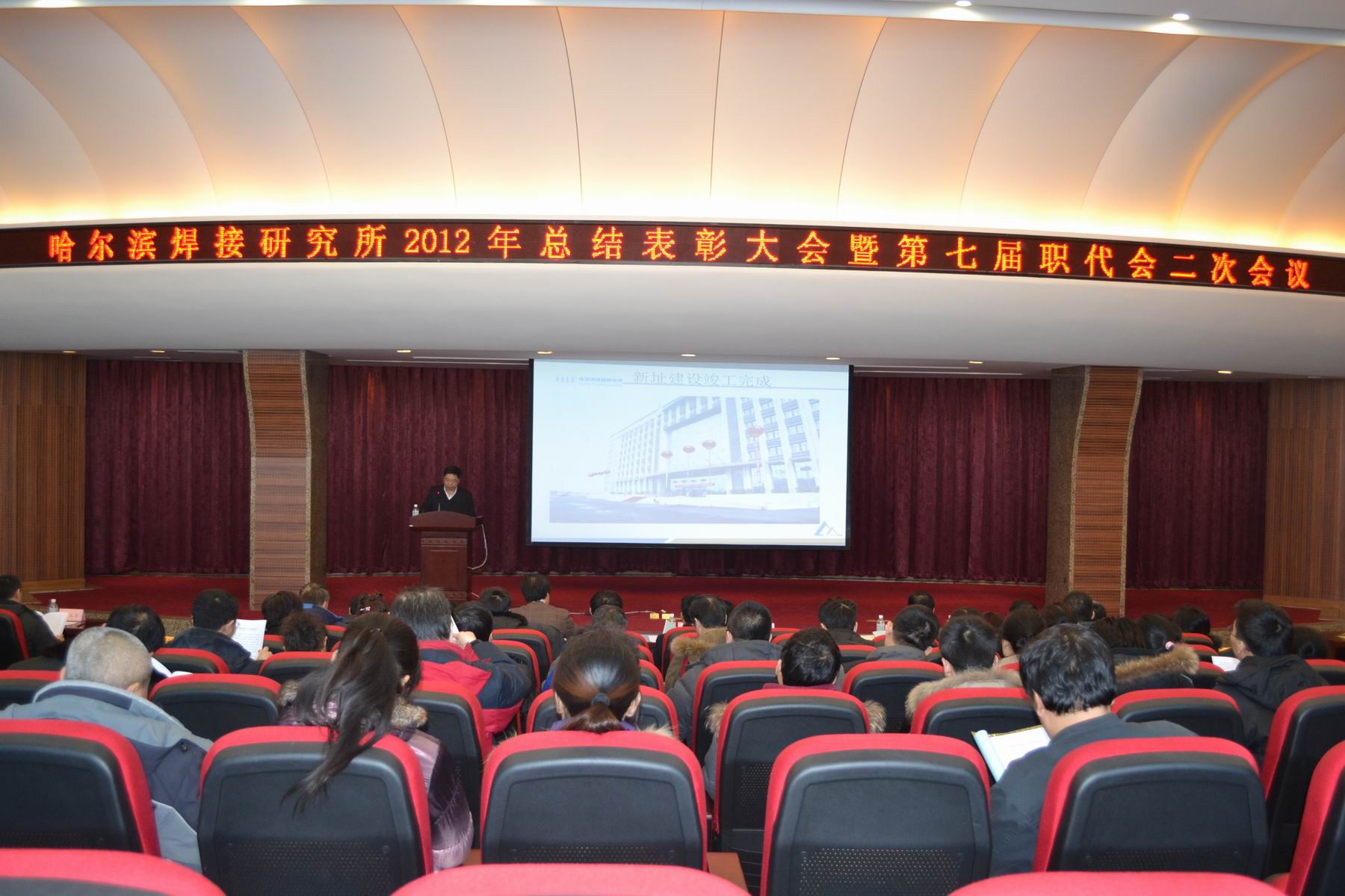2013年2月4日在所輔樓學術報告廳召開了哈焊所2012年總結表彰大會暨第七屆職工代表大會二次會議。大會由黨委書記楊玉亭同志主持,職工代表、列席代表及全體職工參加了會議。