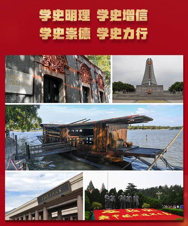 當(dāng)天晚上,中國共產(chǎn)黨第一次全國代表大會就正式開幕了。現(xiàn)在上海市興業(yè)路76號,就是當(dāng)時一大的會址,當(dāng)時是上海法租界望志路106號。各地黨組織派出的13名代表出席會議。共產(chǎn)國際代表馬林首先致辭,對中國共產(chǎn)黨成立表示祝賀。第二天,各地代表分別報告本地區(qū)黨、團(tuán)組織情況。25日和26日休會兩天,起草供會議討論的黨綱和工作計(jì)劃。27日、28日和29日,連續(xù)三天舉行三次會議,對黨的綱領(lǐng)和決議進(jìn)行了詳盡的討論。30日晚,因一名神秘男子的突然闖入而終止會議,代表們分批轉(zhuǎn)移到浙江嘉興南湖的游船上繼續(xù)進(jìn)行。嘉興南湖,由此成為中國共產(chǎn)黨揚(yáng)帆起航的圣地。“紅船精神”也成為共產(chǎn)黨最具代表性的精神標(biāo)識。