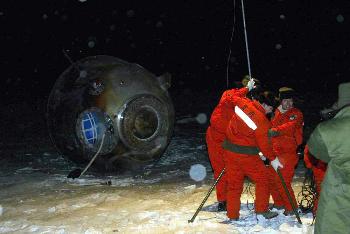 “神舟”四號飛船返回艙安全降落在內蒙古中部草原