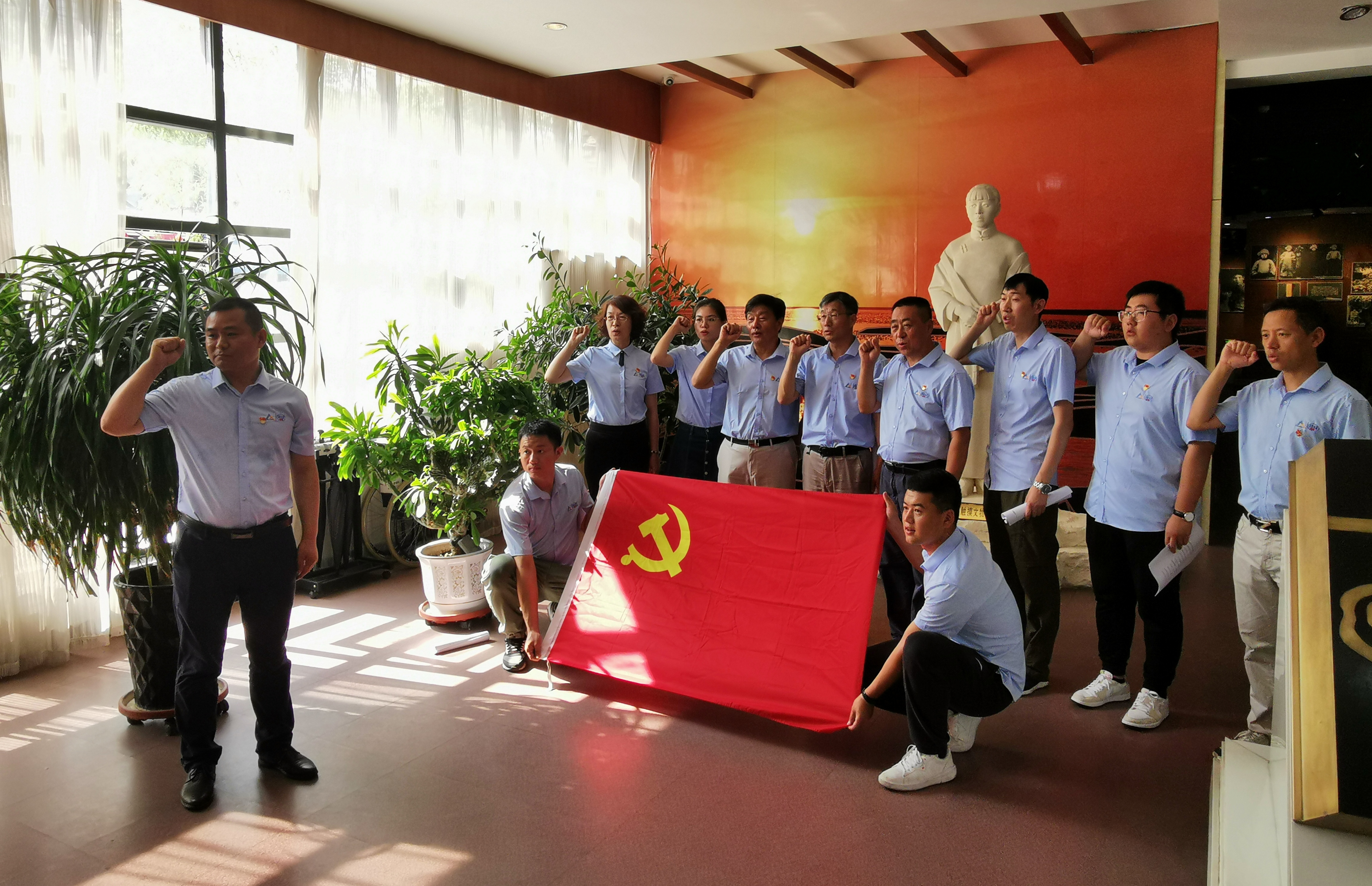 紀念館內,黨支部書記楊戰利帶領全體黨員面對黨旗莊嚴宣誓,重溫入黨誓詞。隨后,大家在解說員的帶領下,參觀故居陳列室,瞻仰蕭紅塑像,觀看名人贊美與懷念蕭紅的詩詞、書畫等。大家紛紛被蕭紅高尚的民族情懷與愛國主義精神所感動,更加清楚地意識到新時代美好生活的來之不易。