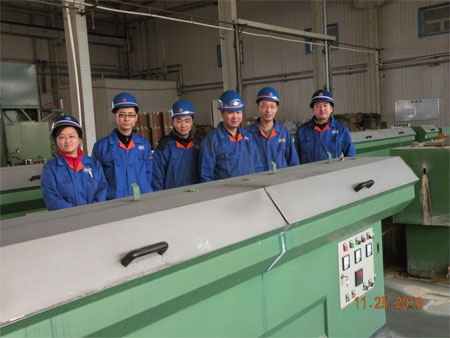 按照“突破一個難題”的既定目標,小組積極開展工作,以組長周世鋒為首的部門全體員工分工合作,分頭開展各分項任務工作:項目負責人帶頭充分查閱資料,深入分析,制定了科學合理的研究方案,研究工作目標明確,年輕的科研人員勇于承擔重任,分工合作,逐個突破冶金工藝研究、拉拔工藝研究、焊接工藝研究,樣絲試制等多方面的難題,于今年8月初突破了該項目的技術難關。