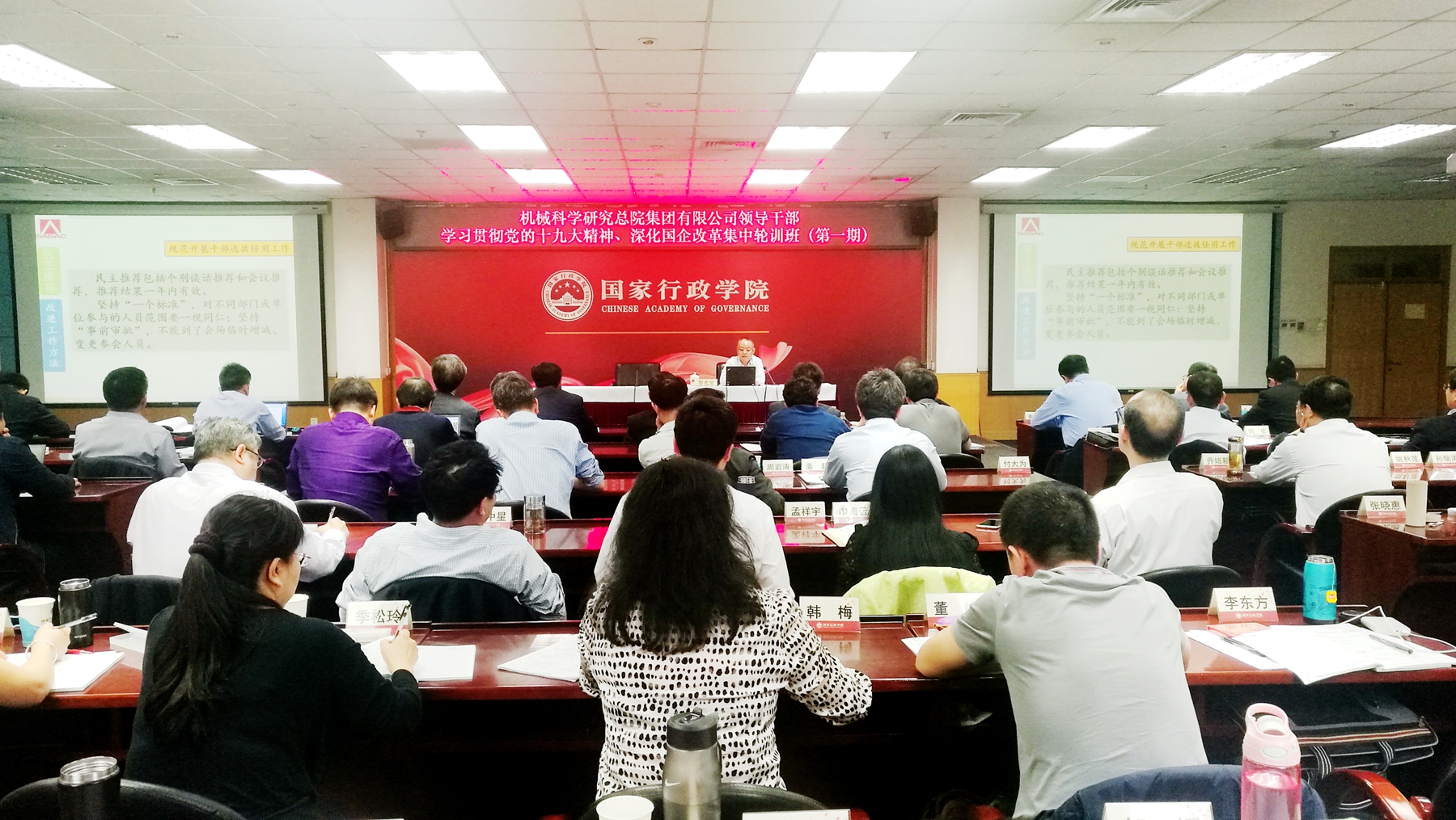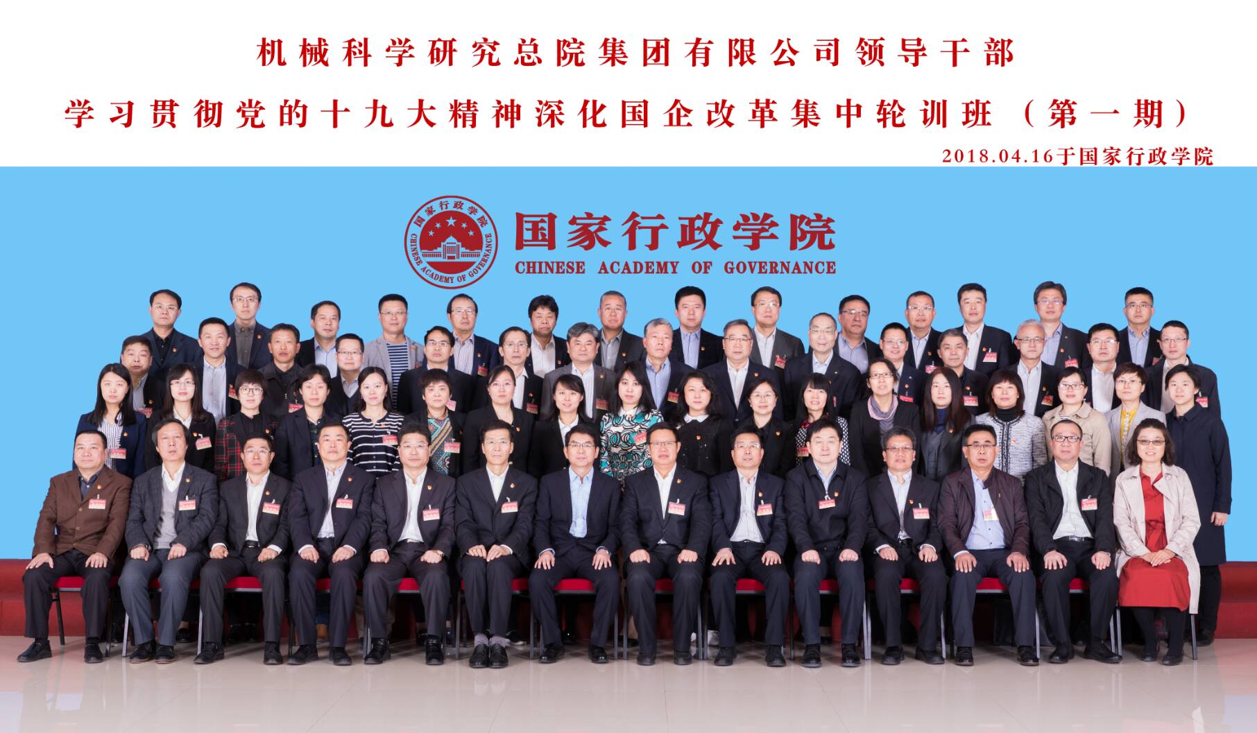 4月16日至4月20日,機械總院集團領導干部學習貫徹習近平新時代中國特色社會主義思想和黨的十九大精神、深化國企改革集中輪訓班(第一期)在國家行政學院成功舉辦。機械總院集團黨委書記、董事長、總經理王德成,各單位董事長、黨委書記、總經理,集團總部各職能部門主要負責人以及各單位黨群、人事、紀檢部門主要負責人參加了培訓。