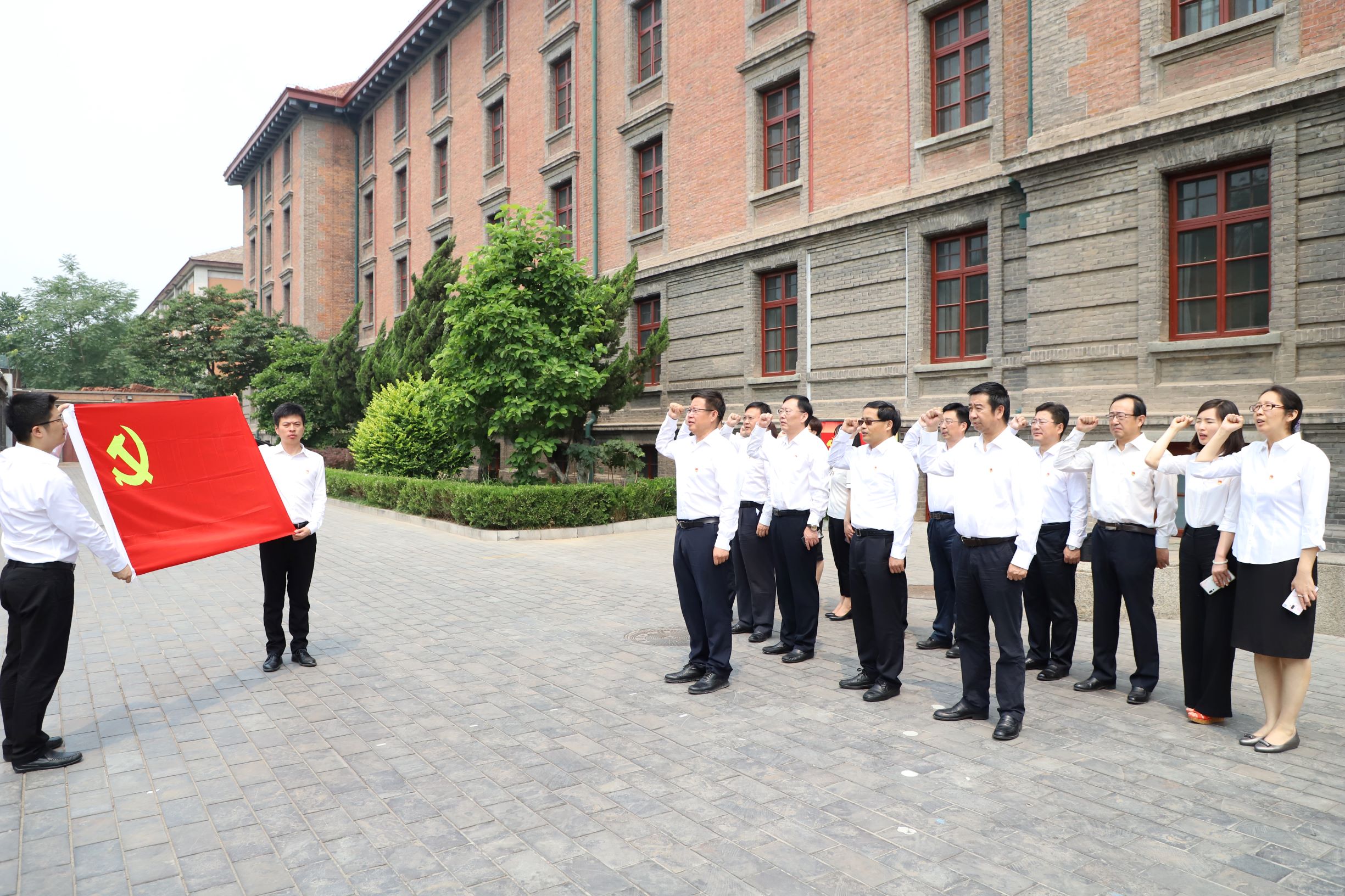 在北大紅樓前,王德成書記帶領大家面向黨旗,舉起右拳,重溫入黨誓詞。回蕩在北大紅樓廣場鏗鏘有力的誓言,代表著機械總院集團黨委堅定的政治信念和強烈的使命擔當。更是提醒我們,無論何時都始終不能忘了我們的初心和使命,堅持以習近平新時代中國特色社會主義思想為指導,用實際行動詮釋機械總院集團人的使命擔當。