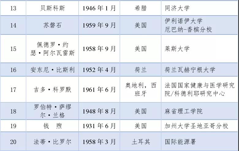 中國(guó)工程院2021年當(dāng)選外籍院士名單(共20人)