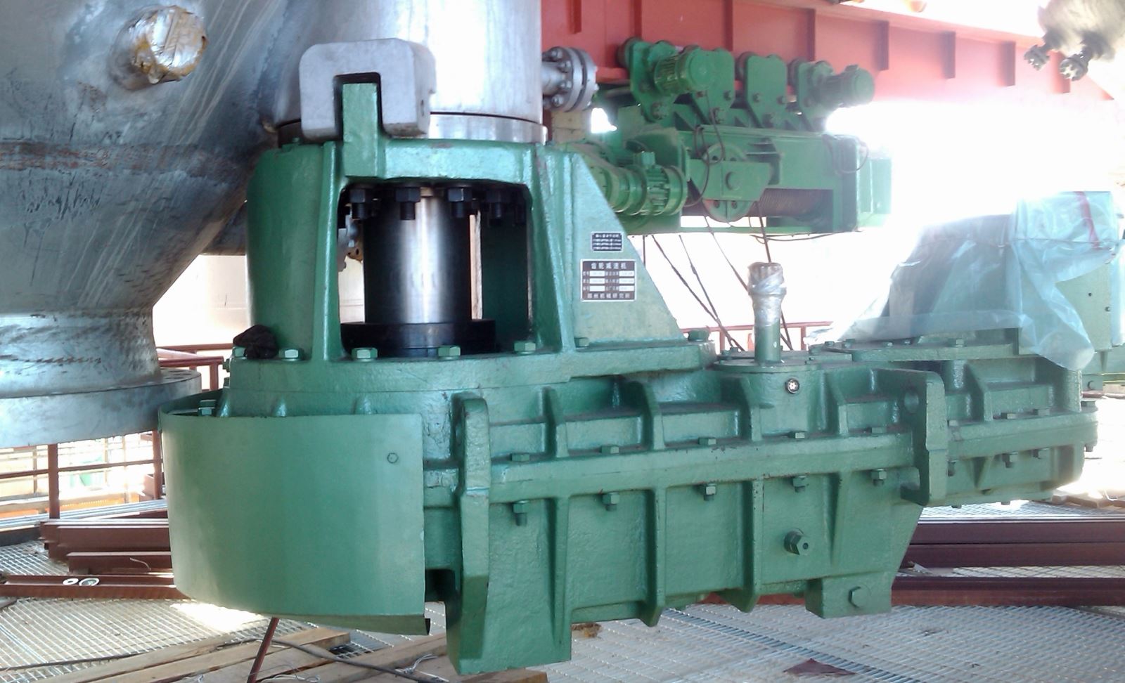 海洋鉆井平臺齒輪傳動裝置,2004年取得了ABS和CCS船檢證書,先后為原北方鉆井公司“渤海8號”、原南方鉆井公司“南海1號”及“南海4號”等平臺開發生產了升降傳動裝置和海水泵塔等,2011年為武漢船用機械有限公司配套研制生產了“自升式海洋鉆井平臺提升裝置”。